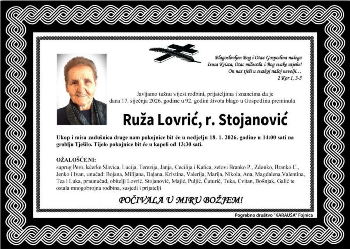 Umrla je Ruža Lovrić, r. Stojanović